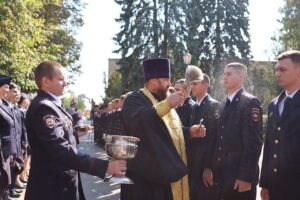 Обращаясь к присутствующим, священник передал руководству ГУ МВД, молодым сотрудникам и гостям мероприятия благословение и благопожелания Высокопреосвященнейшего Леонтия, митрополита Воронежского и Лискинского, Главы Воронежской митрополии. Также отец Алексий поздравил выпускников образовательных учреждений МВД, пожелав офицерам относиться к людям так, как они бы хотели, чтобы относились к ним. Затем священнослужитель совершил молебен и окропил присутствовавших святой водой, благословив их на предстоящую службу.