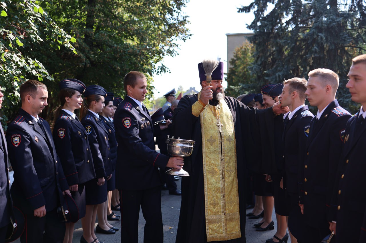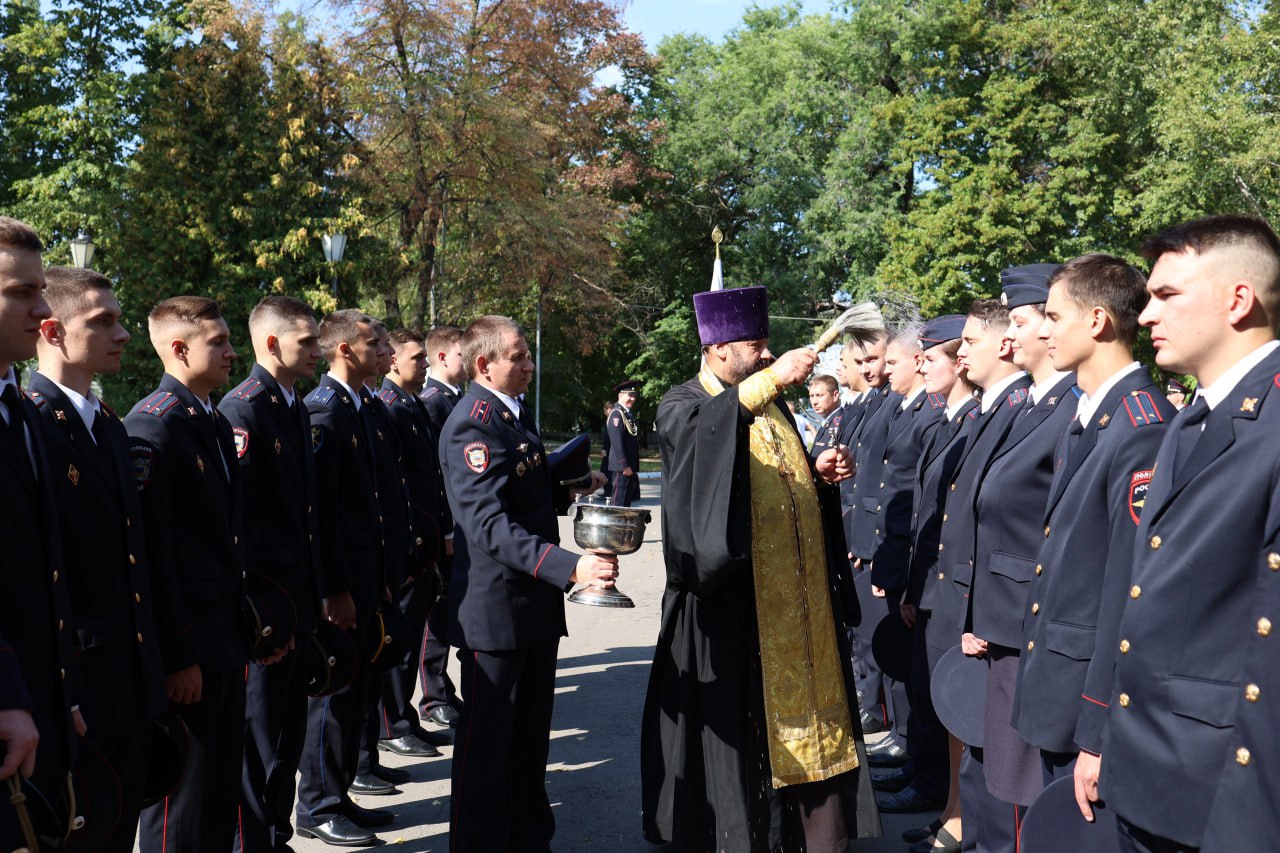 Обращаясь к присутствующим, священник передал руководству ГУ МВД, молодым сотрудникам и гостям мероприятия благословение и благопожелания Высокопреосвященнейшего Леонтия, митрополита Воронежского и Лискинского, Главы Воронежской митрополии. Также отец Алексий поздравил выпускников образовательных учреждений МВД, пожелав офицерам относиться к людям так, как они бы хотели, чтобы относились к ним. Затем священнослужитель совершил молебен и окропил присутствовавших святой водой, благословив их на предстоящую службу.