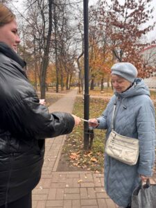 Студенты раздали прохожим несколько десятков буклетов в парке им. Дурова и в одном из вузов города. Молодые люди не только делились информацией на бумаге, но и заводили с горожанами добрые беседы, посвященные знаменательному событию 1612 г., положенному в основу праздника — освобождению Москвы от польско-литовских захватчиков.