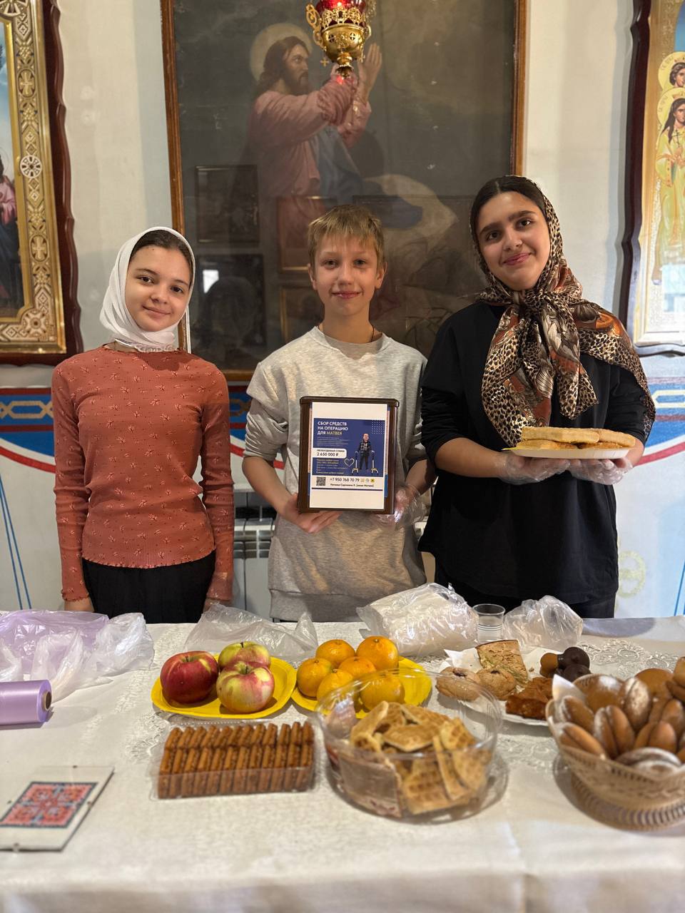 Родители и дети своими руками подготовили угощения для прихожан храма, которые раздавались после окончания Богослужения за посильные пожертвования. Все средства будут направлены на проведении срочной операции для больного ребенка.