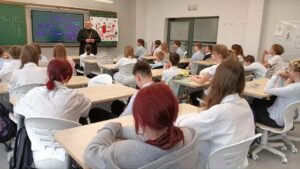 Просветительские визиты клирика храма в честь Рождества Христова в МБОУ СОШ 45 в рамках Дня православной книги продолжаются. Так, 20 и 23 марта священник Артемий Азовский беседовал с учениками школы среднего и старшего звена.
